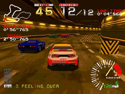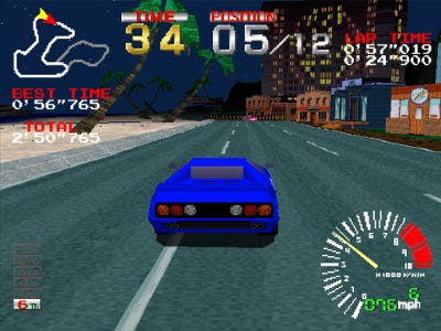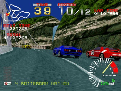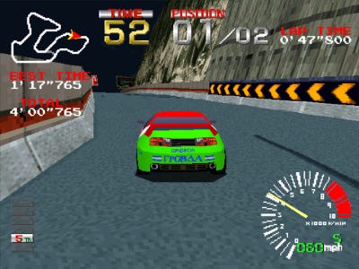 Ridge Racer provided a more immersive racing experience with its small but effective nuances. The sound of your engine echoed slightly when entering a tunnel. The scenery seamlessly changed from daytime to dusk, to nighttime, and then back again. Smoothly maneuvering through tough hairpin turns and S-curves garnered a compliment from the announcer watching the competition.
