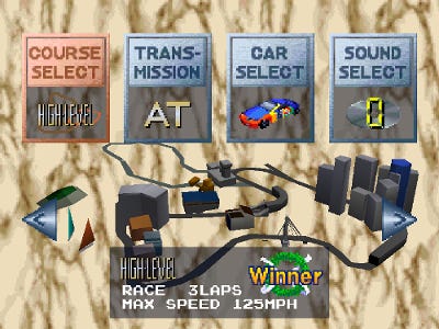 The best part of Ridge Racer to me is the soundtrack. It was groundbreaking and unlike anything I had heard in a driving game. Composed by Shinji Hosoe, all six songs well captured the new possibilities that the CD audio provided. Some highlights for me were the self-titled “Ridge Racer” track with its bass guitar airy synths front and center, “Rare Hero” and its buzzy bassline, and “Rhythm Shift” featuring a rave motif.
