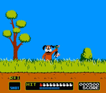 In games A and B, your trusty hunting hound kicks off each round by sniffing out the fowl hidden behind the grass. Once their position is discovered, he leaps into the grass, forcing the winged creatures out of hiding. And that’s where your marksmanship skills come into play. Should you miss your targets, in addition to being the shame of hunters everywhere, your dog pops out from the bushes with a mocking giggle, making it awfully tempting to see if the Zapper works on him too.