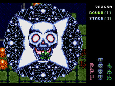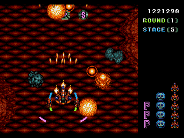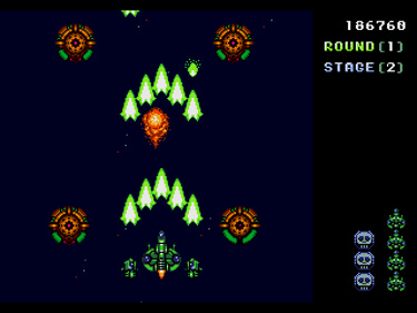 Truxton is quite the formidable game, no matter which difficulty setting is selected. By the time you reach the second stage, you’ll be frequently dodging and fending off enemies from all sides. Even with fully upgraded firepower, you’ll still have your hands full with the relentless bombardment of those pesky minions trying to blow you to bits.